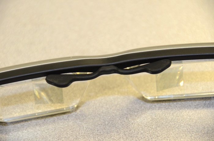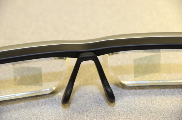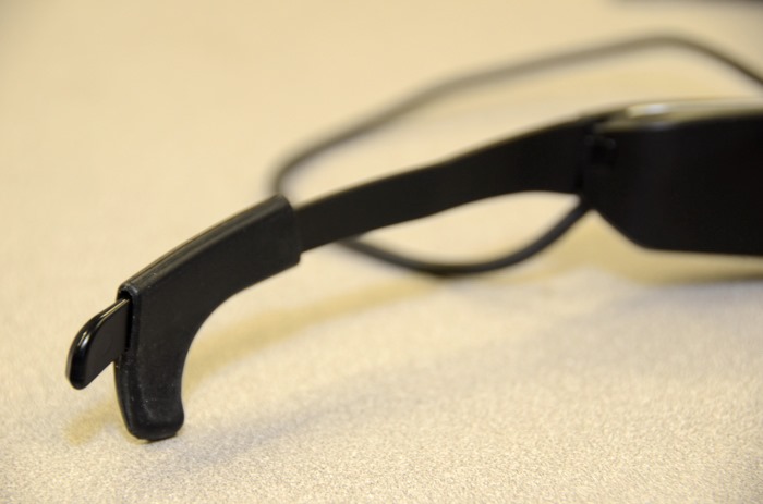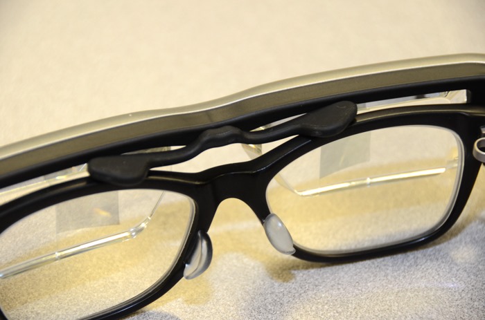 只要將鼻托拉平,就可直接依靠在眼鏡上,所以有配戴眼鏡的朋友使用上也不會有問題。如果BT-200是你專屬的配備,在附件中還有一個可完整與BT-200結合的鏡框,使用該鏡框進行配鏡後,BT-200就可如一般眼鏡方式使用。