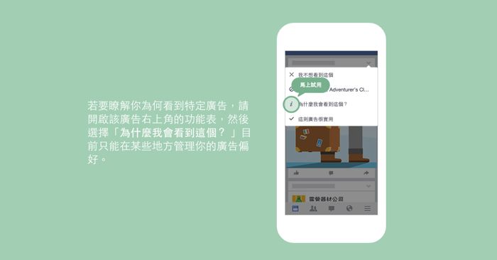 也就是說從 2015 年 1 月 1 日開始,Facebook 使用者將可以從塗鴉牆上廣告旁的新選項 “為什麼我會看到這個?” 來進行篩選與過濾。