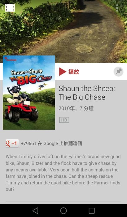 其實 Google 也很貼心的在開幕期間贈送了大家一部可愛的動畫片- Shaun the Sheep: The Big Chase,讓大家可以先利用這部七分多鐘小短片來體驗一下 Google Play 影片的閱覽感受。