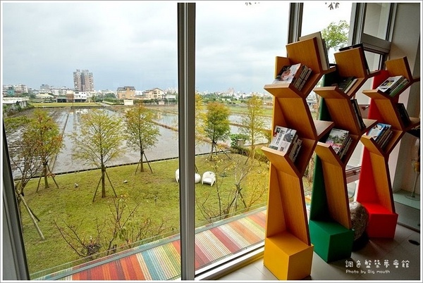 ▼造型書架上擺滿了有趣的旅遊書,像是樹枝的造型非常討喜!窗外的綠意盎然,讓人頓時忘卻塵世的煩惱!