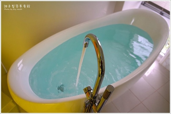 ▼浴缸,一旁的水龍頭就是要放浴缸水用的!記得洗澡前先放熱水,不然洗完澡可能浴缸的水才滿一半而已!浴缸不大不小,一個人泡真是剛剛好,感覺一天的疲憊都消失惹!