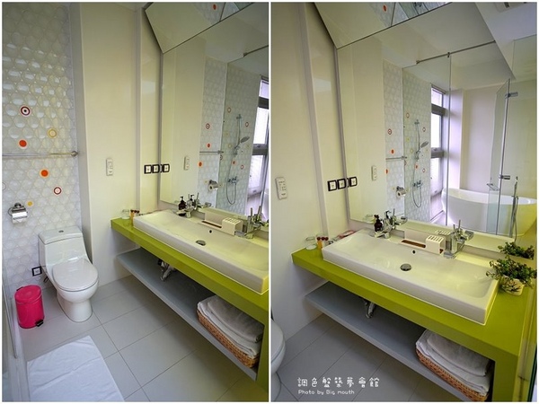 ▼另外廁所是雙洗手台式,還有一面大大的鏡子,對女孩兒來說非常實用!備品都放在洗手台旁,毛巾與吹風機則是放在洗手台下方!