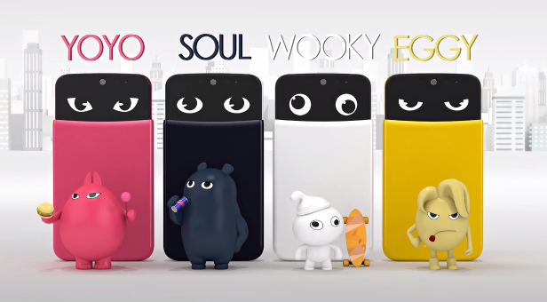 這系列 AKA 手機中分別賦予了粉紅色-YOYO、黑色- SOUL、白色- WOOY、黃色- EGGY 四個顏色各自的角色。