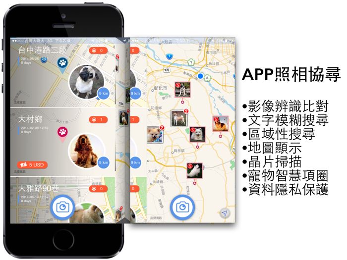 FindDog 找狗網是全世界第一個可以透過手機拍照或輸入電腦相片,填寫狗狗資訊,運用雲端辨識系統的寵物協尋服務。藉由寵物協尋賞金的機制,吸引更多人加入協尋網絡,讓心愛的寵物可以早日回到主人身邊。