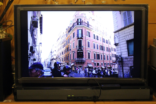 當然原廠也貼心提供一條紅外線接收器,可以解決這一類的問題產生。在背面有內藏式的接頭介面,可以幫你隱藏不必要的突出接頭,其中有 HDMI、網路孔、光學輸入二組、紅外線輸出一組,除了功能也顧及美觀。