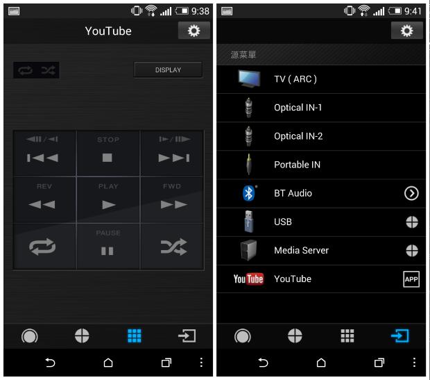 第三個是影音播放介面,根本就是遙控器了,在家一時找不到遙控器,就用手機就搞定了啦!最後是來源的選擇,看要用哪個功能就直接在上面點選就可以了。