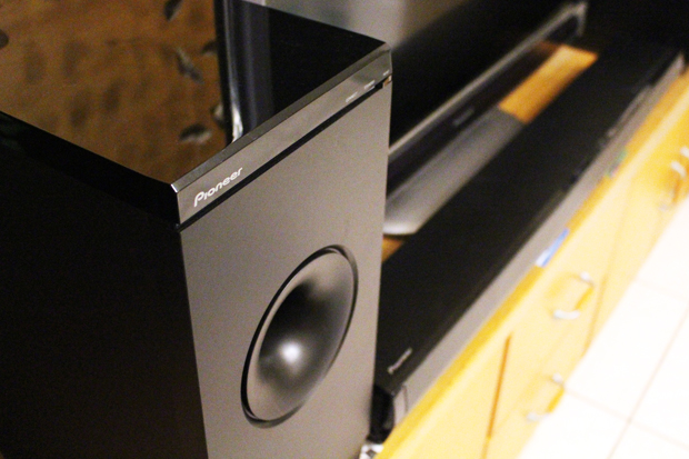 另外不得不提一下 Pioneer 先鋒無線網路前置揚聲器系統 Sound Bar (SBX-N700) 配置了重低音的喇叭,重點是還是無線傳輸的,不一定要放在主體旁邊,甚至可以放在沙發後面,在家裡可以自由配置,感受重低音的效果。
