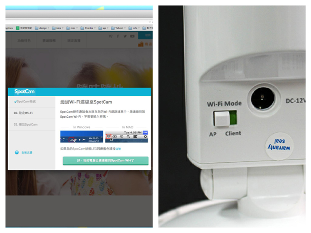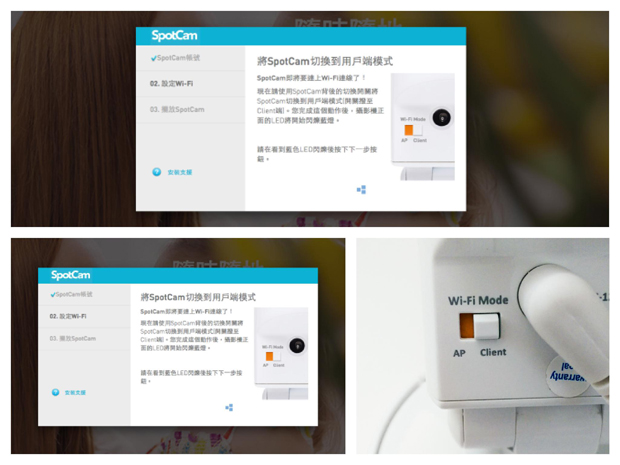 最重要的目的只是要把 SpotCam 連到我們家的 WiFi 囉!所以一開始先切換到 AP 模式,讓你的電腦或手機先連到 SpotCam。