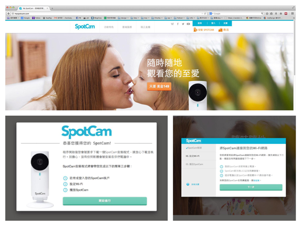在 MySpotCam.com 註冊後,新增安裝你的 SpotCam(用行動裝置設定也可以),照裡面的三個步驟一直「下一步、確定」就可以了,沒有繁複的手續。