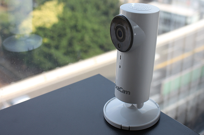 一般安裝這類監視器都有夠麻煩的,以前幫恰爸裝個監視器,還要兩個人在那邊搞半天(還弄不出畫面…),弄佈線、弄主機這樣的大工程真的是要累壞人了,還好 SpotCam 的設計就很簡單,接上電源再小設定一下(甚至用手機就可以設定好),就整個完成了!首先咱們先把 SpotCam 安置起來,還可以這樣扭來扭去喬角度。