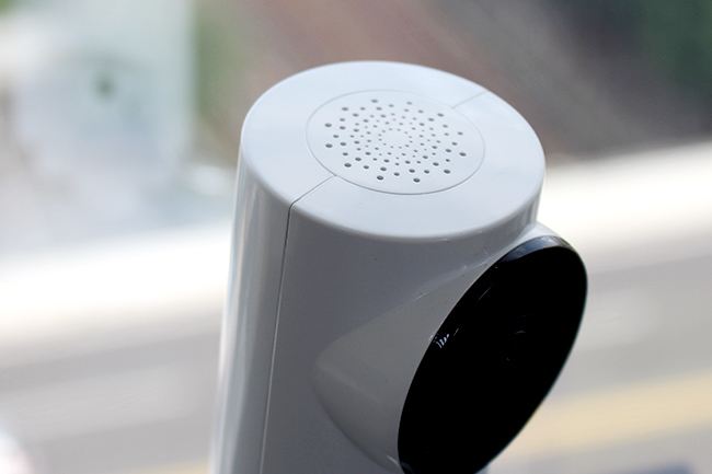 這裡有內建麥克風和喇叭,頂端這邊還可以聽到另一端的聲音,如果家中的老人和小朋友會講話,也可以這樣溝通,支援雙向語音撥放,真的是好棒的設計!