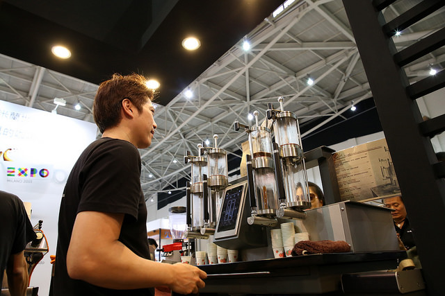 以代理銷售「La Marzocco」義式咖啡機聞名的維堤咖啡,肯定是今年咖啡展必訪的重點攤位之一,在四天的展期內,找來全台灣各地知名的咖啡店家輪流站吧,四個沖煮站點讓來訪的賓客們,可以一次喝到四種不同機器所沖煮出來的名店咖啡配方。