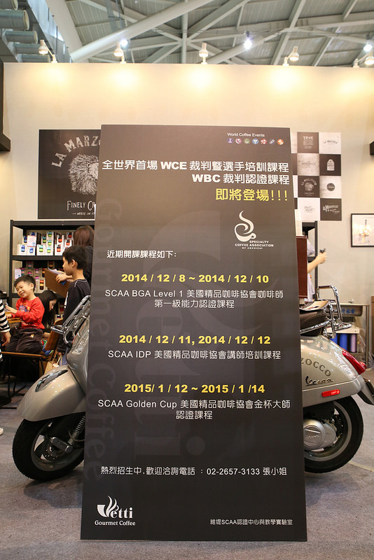 除了每年的咖啡展的火力展示之外,維堤咖啡還會舉辦 La Marzocco – Out of Box 論壇活動,結合咖啡、音樂、美食,甚至是義大利偉士牌摩托車,帶給咖啡業者們不同於靜態展覽的美好體驗。所以這次在即將出版的《咖啡大叔嚴選‧50間自家烘焙咖啡館的美味配方》書裡面,也特別為大家收錄了維堤咖啡創辦人楊明勳的訪談,首場簽書會也會在他們家舉辦,時間目前預計是在12月26日晚上七點左右,請先為我把這個晚上在行事曆上空下來,感恩。