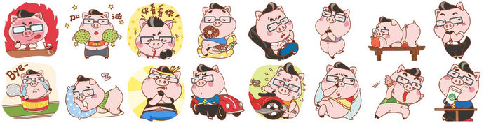 WeChat動態貼圖 開心小豬奮鬥記 (共16款)