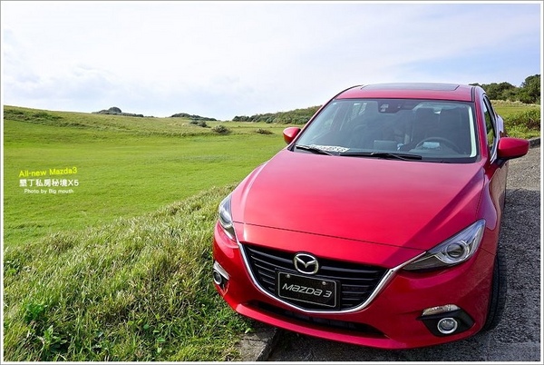 ▼趁著佳鵝公路沒有很多車時來拍一張吧!All-new Mazda3的魂動紅實在太亮眼了,每個角度拍起來都別有一番風味與美感!只是風真的太大惹,吹得大口的頭髮亂七八糟搭!