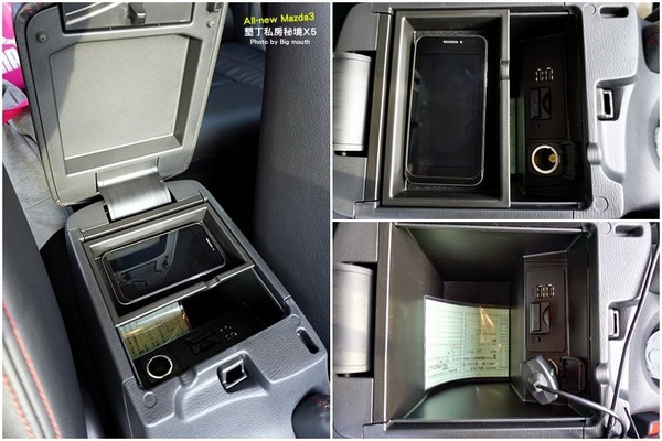▼此外,中控台下方的儲物空間也是相當不錯,除了點菸器外還有USB插座,可以同時提供導航、手機、行車紀錄器等等的電源,另外還有準備放置手機的位置,相當大心啊!