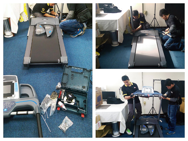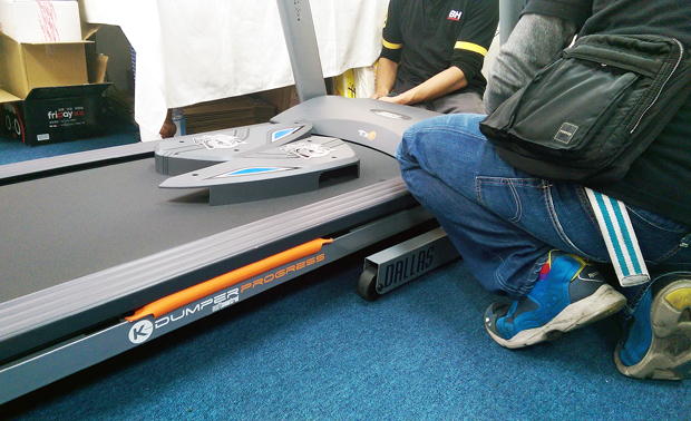 這應該是我第一次寫的跑步機開箱!光看到小牛隊的 LOGO 我就已經熱血沸騰了,好想趕快使用!(想像自己和德佬 Dirk Nowitzki 跑同一台跑步機就覺得很跩)。BH 果然是歐洲的健身器材大品牌,跑步機送來時還有兩個工程師幫我們協助安裝。