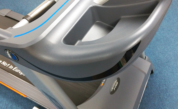 跑帶方面 BH 也很講究,有這樣防靜電、防打滑的三層式跑帶技術,防靜電層為底,並且採用高摩擦係數的鑽石紋路為表層,在跑的過程中也不容易打滑,保護我們的安全。