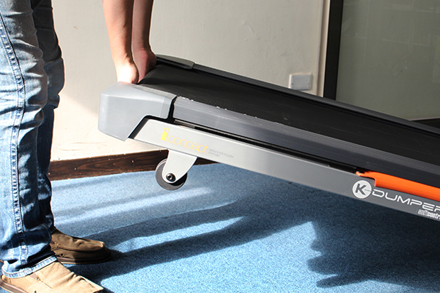跑帶往上提起之後,就可以留很大一個空間,之後有需要使用時,簡單撥動支撐開關,跑道就會緩緩下降(不會突然驟降),多餘的空間可以在拿來利用囉!