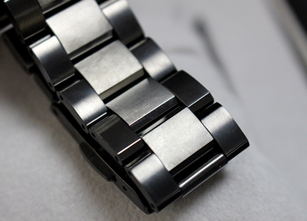 機芯是採用日本石英機芯,錶殼方面因為採用高階 DLC 塗層電鍍技術做了高耐磨處理,提昇了整體的耐磨度。