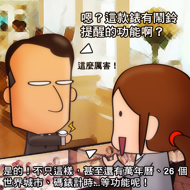 我個人很喜歡這個世界時鐘的功能,像如果我在國外,像歐洲會有夏令時間,會比平常少一個小時,時針會自己轉回去呢!