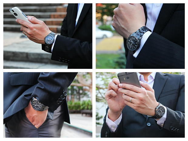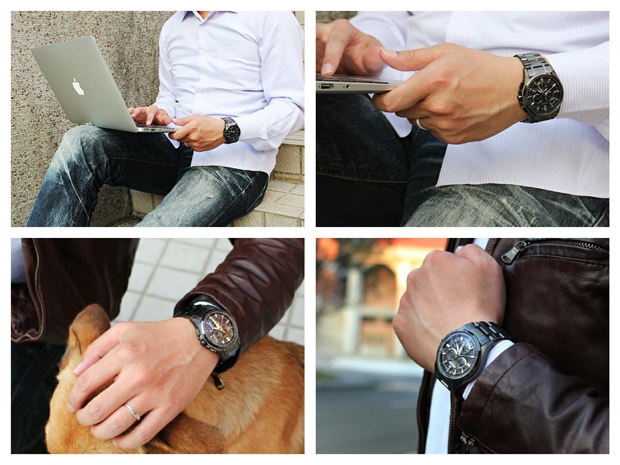 可能是因為鈦金屬錶殼和錶帶搭配湛黑的錶盤設計,所以感覺起來很沉穩,真的還滿適合常去國外出差的朋友(反正世界時區顯示功能這麼強!)。