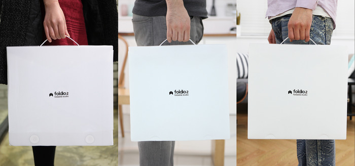 拍攝高標準的商業攝影使用的相機即便是單眼相機也需要適當的光源輔助。而專業攝影棚有可設置的背景和照明能拍攝高品質的照片。然而,很多時候是需要得到正確的設定,且租金成本相當高昂。所以開發團隊設計一個搭配手機使用的簡單、易用的便攜式攝影棚Foldio。Foldio2 較前一代Foldio尺寸加大,寬度與高度達15吋,配備有5700k 的雙色溫LED。