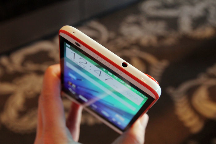 HTC Desire 820 的正面延續了Desire 816上下喇叭boom sound一排孔的設計,電源鍵和Desire 816左右相反。
