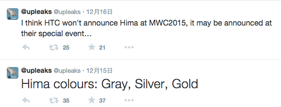 除了 Hima 系列將加入兩個新夥伴以外, Hima 也傳聞將不會於 2015 MWC 中亮相,而是另外會為其舉行發表會,並且將有灰、銀、金三色推出。