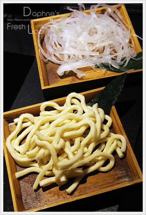 菜盤的量不少,看不到太多加工的火鍋料,在綠色蔬菜部份,捨棄不易保存的茼蒿,及帶有苦味的青江菜,選用嫩甜的高山嫩豆苗,很少看到有火鍋店這樣使用,至少我第一次看到。