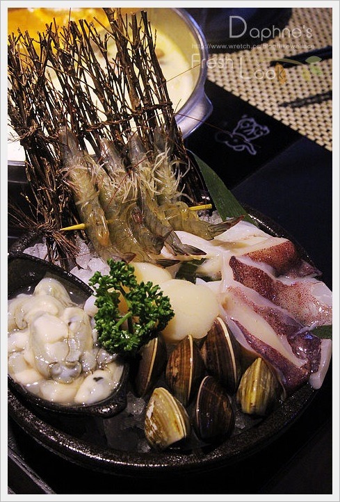 活蝦新鮮、中卷新鮮、鮮蚵不腥、日本干貝軟韌、大蛤蜊飽滿。以牛奶湯煮更顯鮮香味濃。