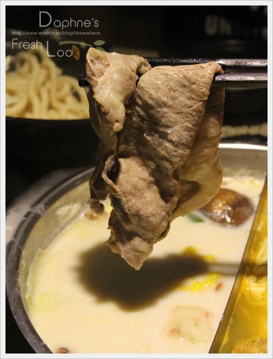 霜降牛一片就非常大,入口即化口感嫩,肉涮兩種湯頭都各有風味,涮牛奶讓牛肉吃起來偏滑細,口感佳,海鮮則不需沾醬。