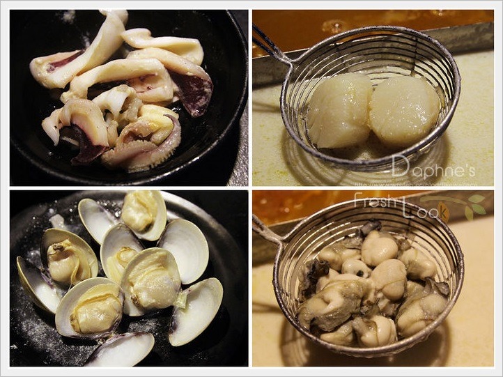海鮮有白蝦、中卷、鮮蚵、日本干貝、大蛤蜊。