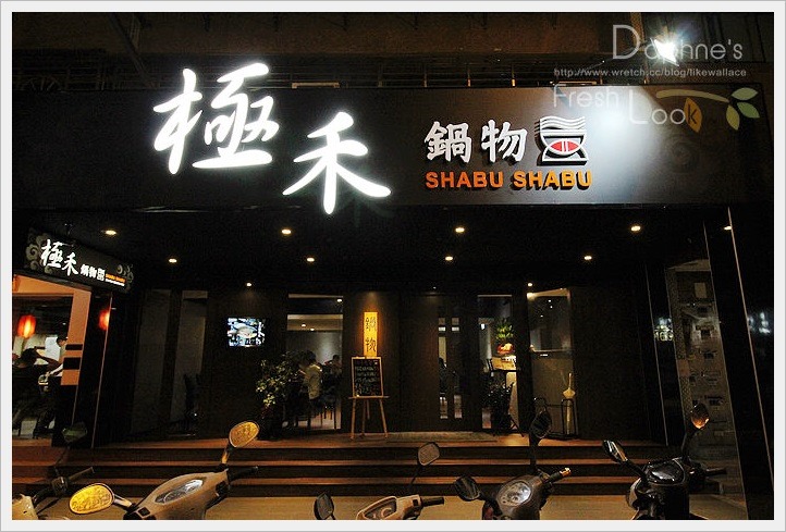 極禾火鍋自行天宮捷運站要步行10-15分鐘,近老是在排隊的不老麻糬,隔壁是櫻川火鍋,招牌的字特別大,似乎有想與隔壁一拼高下的意味。整間店偏向黑褐色的木質古樸裝潢,夜間顯得雅致有氣氛,彎月形的門把有特色。