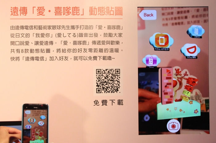 將遠傳的LINE官方帳號加入好友,就能獲贈以LINE動態貼圖主角「愛‧喜嗲鹿」,結合擴增實境(Augmented Reality;AR)技術,透過「愛‧喜嗲鹿」APP拍攝「愛‧喜嗲鹿」N次貼,立即可見「愛‧喜嗲鹿」以3D立體方式撒嬌賣萌。