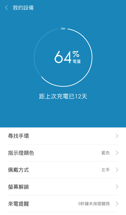 根據官網表示充一次電可以擁有 30 天的續航力,老實說,剛開始看到這些數字都是抱著參考聽聽就好的心態,但戴到目前為止,竟然 12 天了還有著 64% 的電量的確蠻讓人驚艷的。