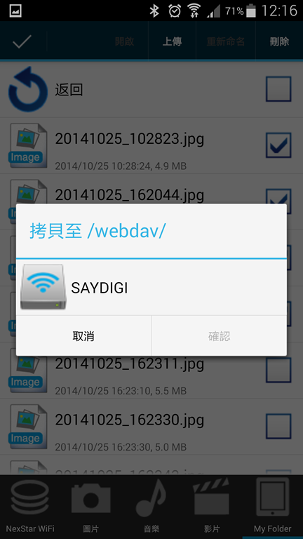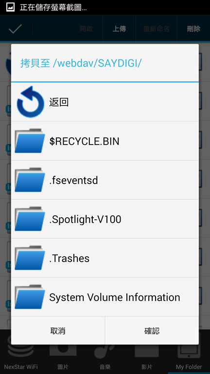 如果你想將行動裝置上的資料與檔案傳到硬碟上,可以直接點選My Folder,就可看到你行動裝置上的所有檔案,點選後就可直接上傳或是管理。