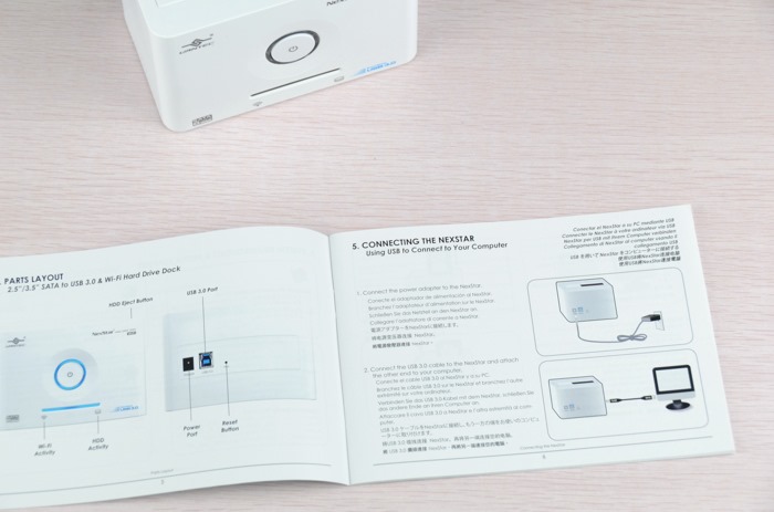 NexStar WiFi Hard Drive Dock外型四方,很像小型的烤土司機一樣,前方就只有電源鍵與指示燈。