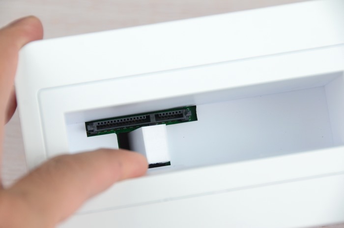 上方的空間就是插入硬碟的位置,可支援SATA I / II / III的2.5吋與3.5吋硬碟。