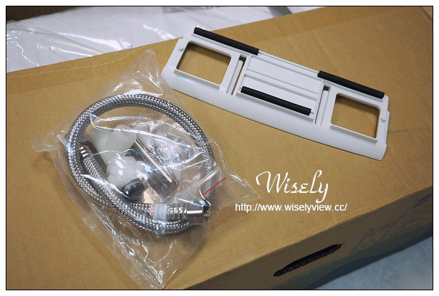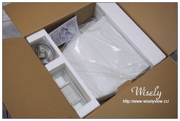 拆開送來的產品紙箱裡,發現內容物還挺簡單的,而且馬桶座比想像中還要輕,並且還有附個安裝卡座與不鏽鋼水管在裡頭,電源線是三孔插頭。