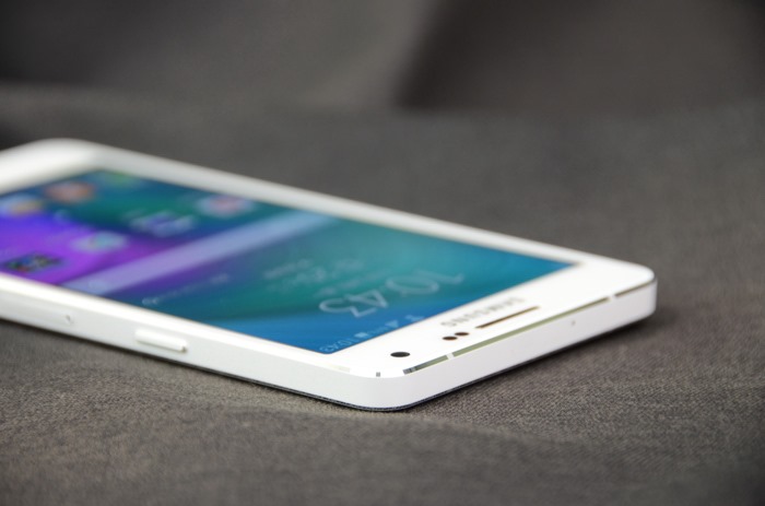 這次手邊拿到的是熱騰騰剛出爐的GALAXY A5,外觀除了以金屬打造外,還具有相當薄的機身,僅有6.7mm,重量也僅有123g。其金屬收邊處,使用鑽石切邊設計,隨著角度變化都會有金屬光線反射,相當好看。