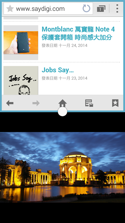 在GALAXY A5中還有多重視窗功能,可讓需要同時進行的功能,以多重視窗方式同時作業。像是在國外網站購物時,就可搭配計算機一起使用,來計算折合台幣的價格。