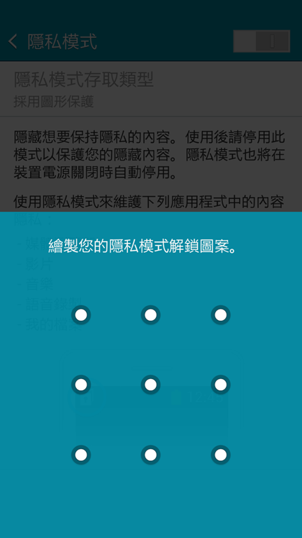 當完成所有要隱藏的資料搬遷後,記得要將隱私模式關閉,也就是結束隱私模式設定的意思,這樣在我的檔案中,隱私項目就會消失。
