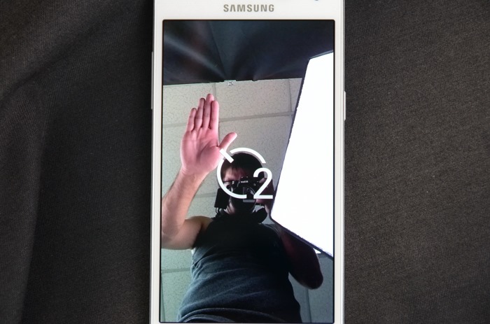 軟體功能部分先來聊一下拍照,在Note 4時非常強調自拍的功能,A5也一樣,新增了手勢自拍,只要舉起手待A5偵測到後,就會啟動倒數拍照,這在使用自拍棒時非常好用,不必安裝多餘的藍牙無線快門。如果一個人出門走走或是旅遊時,想要與風景合照留下紀念,搭配自拍棒與手勢自拍,就可隨處留下好看的照片,或是在網路上分享給朋友們欣賞,也不會因為自拍時要按壓快門,造成拍照晃動影響拍照品質。