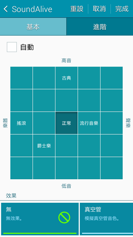 可讓手機自動判斷選擇,你也可以自行挑選曲風,底下來可模擬真空管音色,讓聲音變得更溫暖。