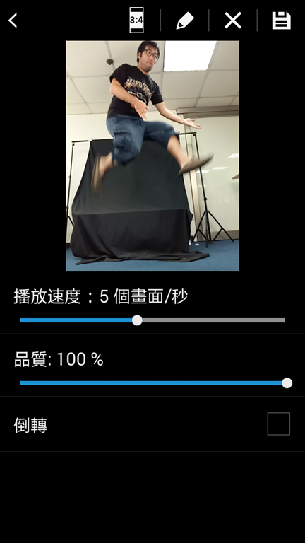 還有一個前後鏡頭都具備的微短片GIF拍照功能,利用20連拍組成動態照片,比起一般影片檔案要小,但拍攝完畢後更容易調整。可調整播放速度外,還可到轉播放。