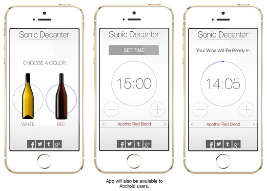 在品葡萄酒時,有的人會使用醒酒器,讓酒與空氣接觸,把酒香發揮出,並讓酒裡的沉澱物隔開。Dionysus Technology Concepts公司在Kickstarter展開集資計劃,推出Sonic Decanter 智慧超音波醒酒器,採用專利技術,改善葡萄酒的口味、口感,讓酒更醇美,只要幾個步驟便完成醒酒程序。