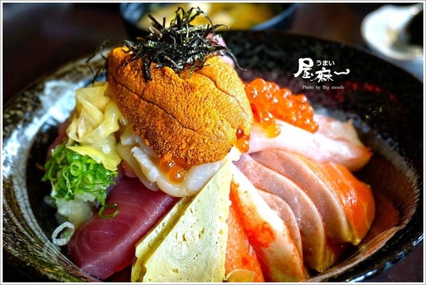 ▼頂級海膽鮭魚卵生魚丼(460元),這一碗生魚片丼飯上桌時著實讓我們大大震驚啊!這料怎麼多成這樣,疊得跟一座小山一樣,C/P值也太高了吧!
