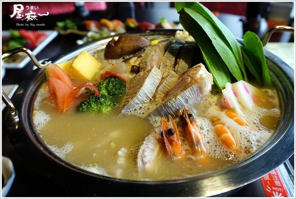 ▼火鍋滾了之後就可以開始食用溜!這些食材在豚骨高湯裡游啊游的,看起來就很美味!他們的火鍋不是想像中那種海鮮柴魚高湯的味道,而是香濃的豚骨風味,非常特別!