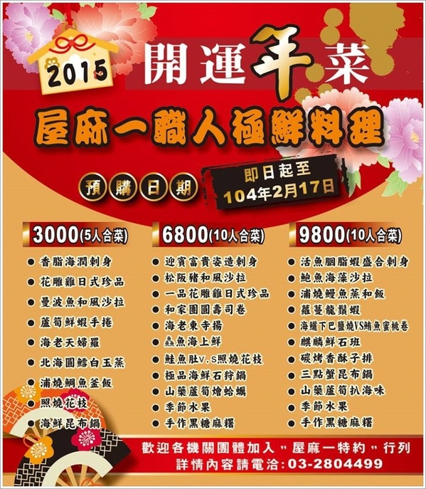 ▼即日起至2/17也有推出年菜預購唷!這樣過年也可以輕鬆吃一頓好料惹!另外也有合菜組合,從3000元~9800元不等,非常適合來這裡聚會吃喝唷!